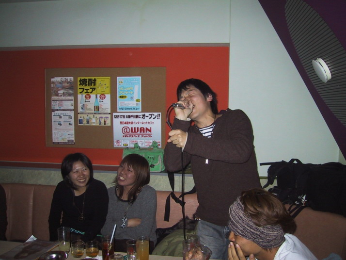 今年最後のイベント、忘年会。2次会からOBの方々が登場してくれましたねぇ。 1コ上の回の人らは全然OBってゆー気がしないんやけどなぁ・・・。 それぞれの役職ごとに撮ろうとしたんやけど、機会失ったりで、写真がない役職もあります。ゴメン・・・m(_ _)m